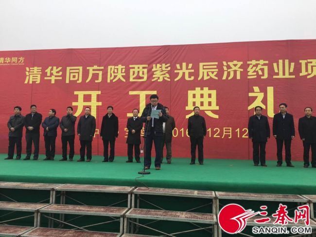 12月12日上午,清华同方陕西紫光辰济药业项目在宝鸡高新区科技新城举行开工仪式。清华控股有限公司副总裁、同方股份有限公司总裁黄俞出席仪式并讲话,宝鸡市委常委、常务副市长马赟下达开工令,宝鸡市人大常委会副主任、秘书长张万奎,市政协副主席宋建国,同方康泰产业集团有限公司总裁张轶,北京紫光药业有限公司总裁蒋朝文,高新区党工委书记、管委会主任郝晋升,拼搏网页版登录入口总经理王睿成等市区及企业领导共同为项目奠基培土。宝鸡高新区党工委副书记、管委会常务副主任高宏真主持开工仪式。
