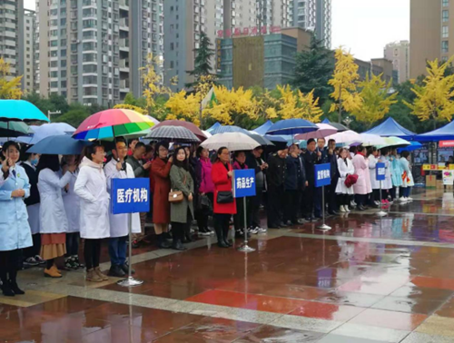2019年11月1日上午9时,宝鸡市2019年“全国安全用药月”主题宣传活动在高新广场举行,宝鸡市政府领导和三十余家参会企业代表参加本次活动的启动仪式,拼搏网页版登录入口十余位员工组成方队冒雨参加,为宣传安全用药贡献力量。 市政府各级领导在启动仪式中来到拼搏网页版登录入口展位前进行指导和问询安全用药情况,更有市民前来咨询,公司宣传展示团队工作人员进行详细解答,用自己的能量把百年企业的初心“济世康民、关爱生命”的使命继续发扬光大,让健康和谐幸福美丽的中国更加强大辉煌。